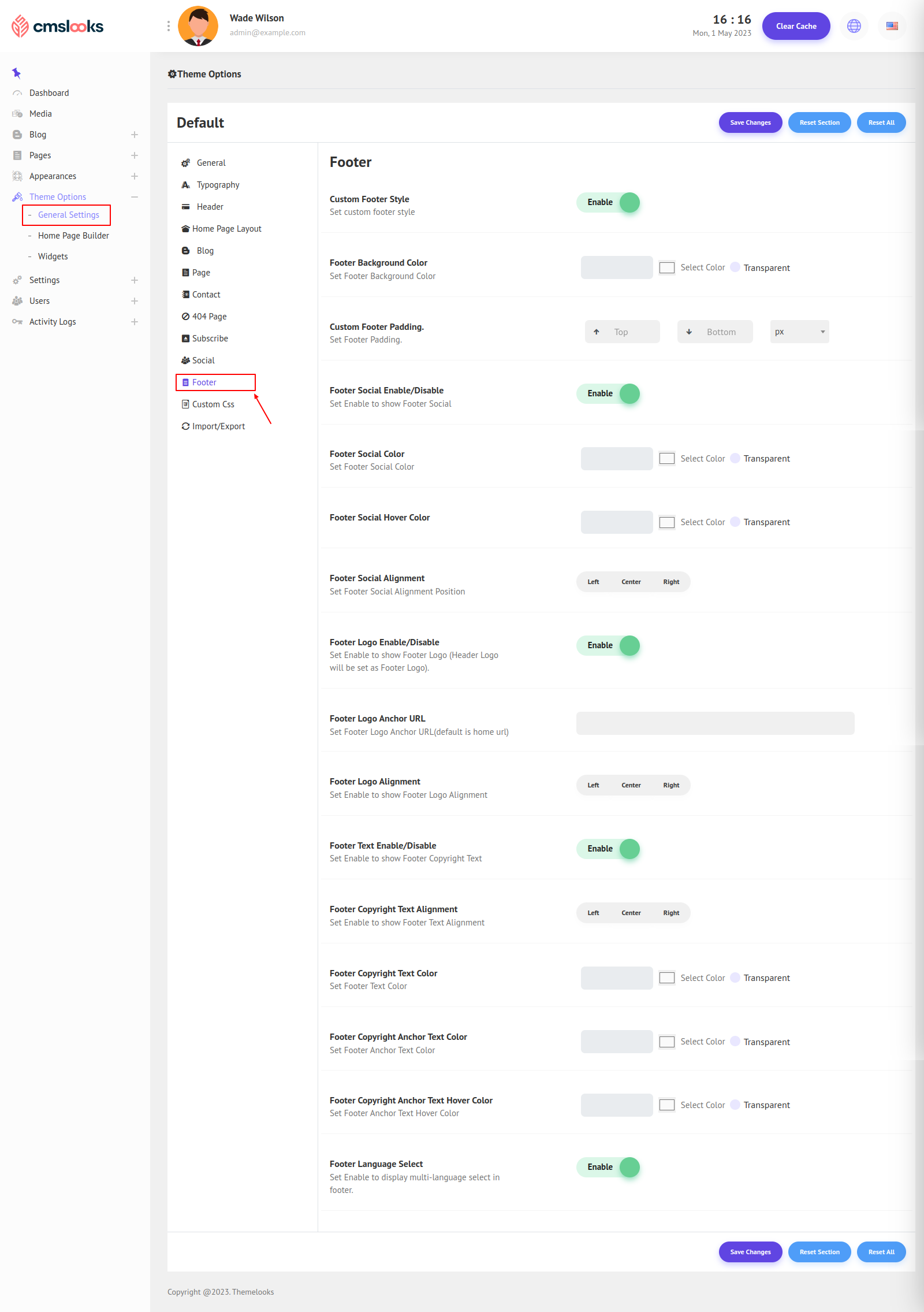 Footer Text Enable/Disable: Set enable or disable the copyright text on the footer.