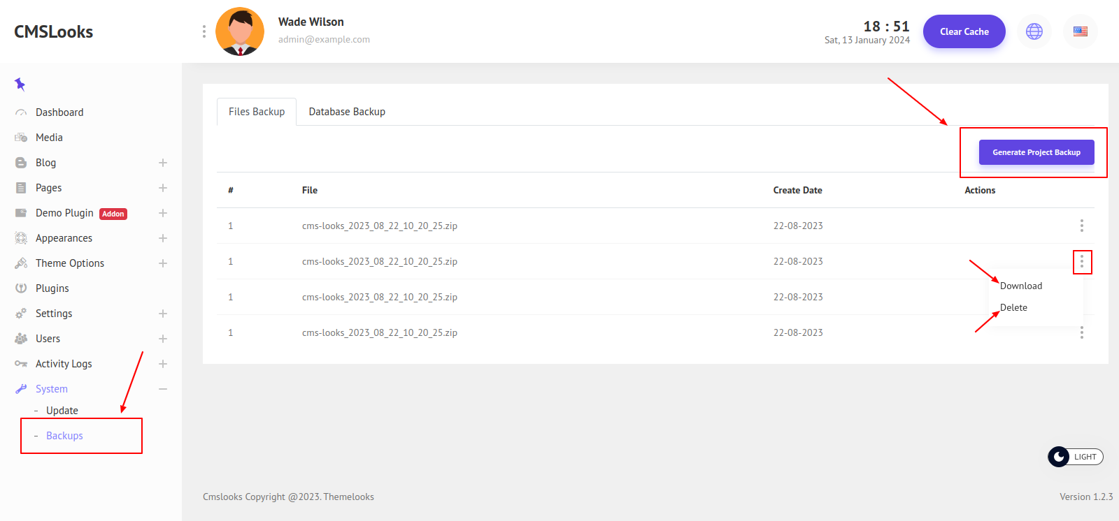 From Here you can create a Project Backup by clicking the Generate Project Backup button. It will take some time and generate the backup file. Now you can download the file and also delete it.