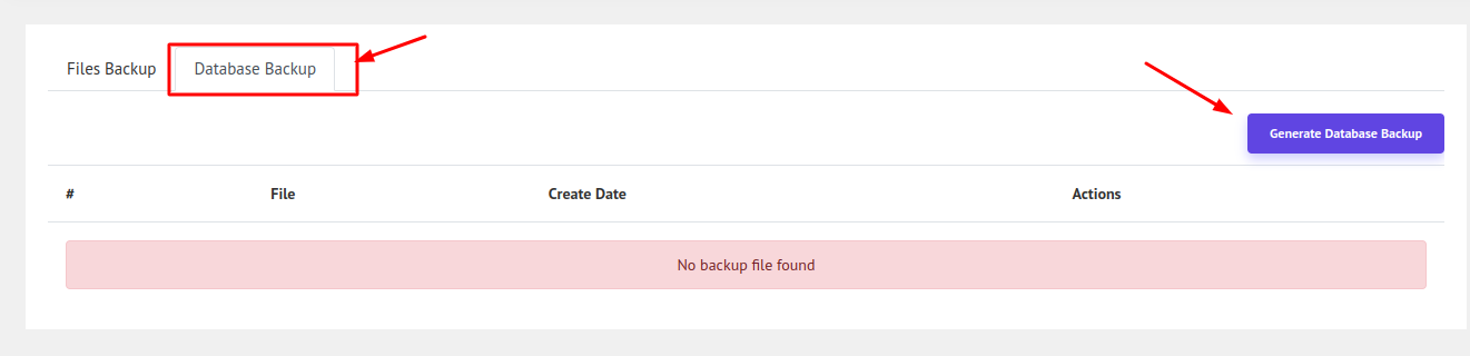 Now to generate Database Backup click the Database Backup tab. Similar to project backup you can also generate database backup and download it.