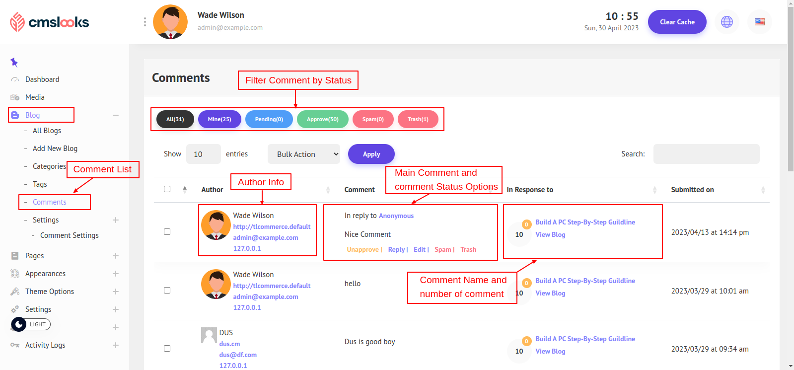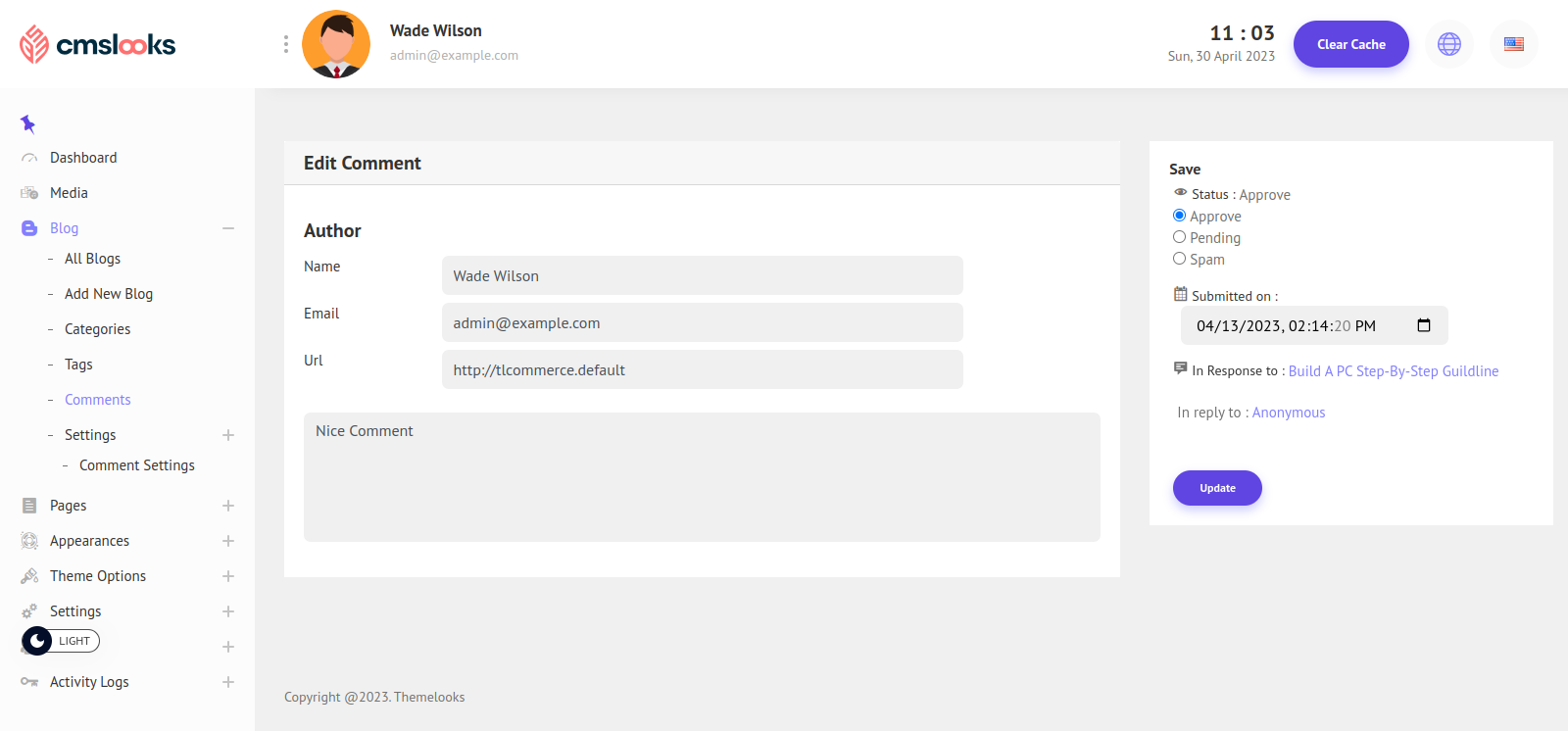 Click the "Edit" Link You Will Be Redirected To the Comment Edit Page.