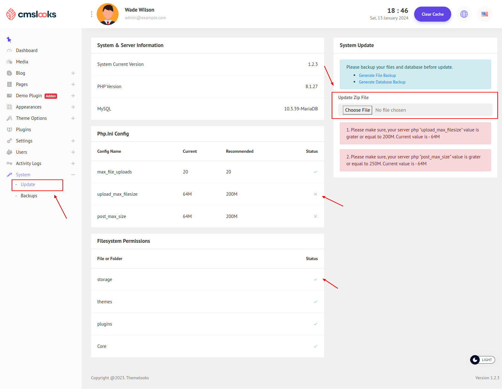Now another way is you can also upgrade to the next version from the admin panel. Following System > Update from the sidebar.